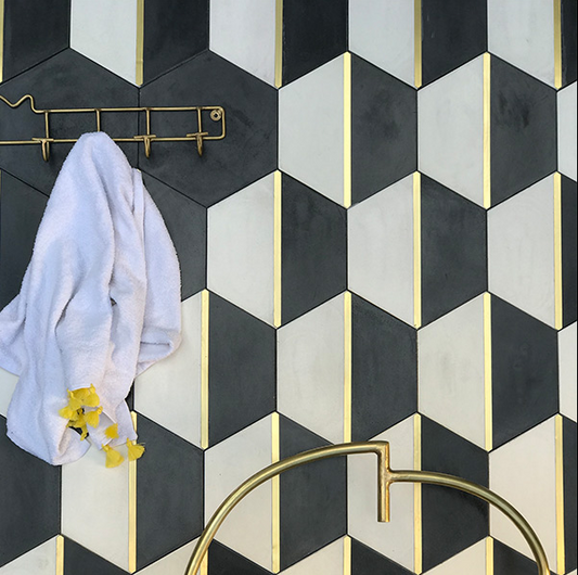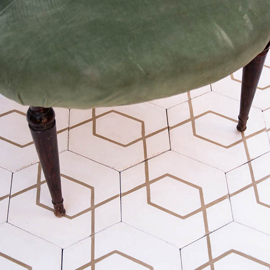 Carreau de ciment C.Hexagonal, ornement en laiton