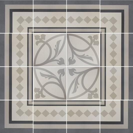 Carrelage imitation ciment rosace 20x20 cm CAPRICE PROVENCE Bordure