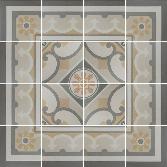 Carrelage imitation ciment rosace 20x20 cm CAPRICE LOIRE Bordure