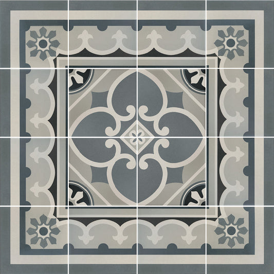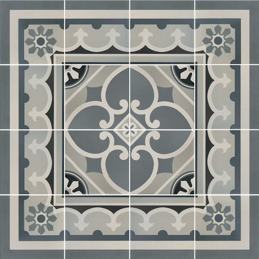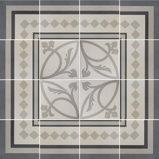 Carrelage imitation ciment rosace 20x20 cm CAPRICE CHATELET Bordure