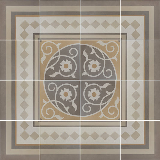 Carrelage imitation ciment rosace taupe ocre 20x20 cm CAPRICE LOIRE