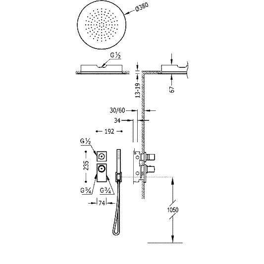 Ensemble mitigeur mural à 2 voies pour douche-00719702