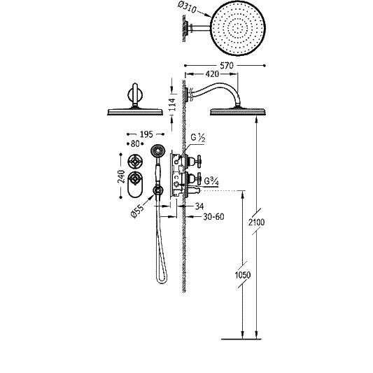 Ensemble mitigeur mural à 2 voies pour douche-00719701