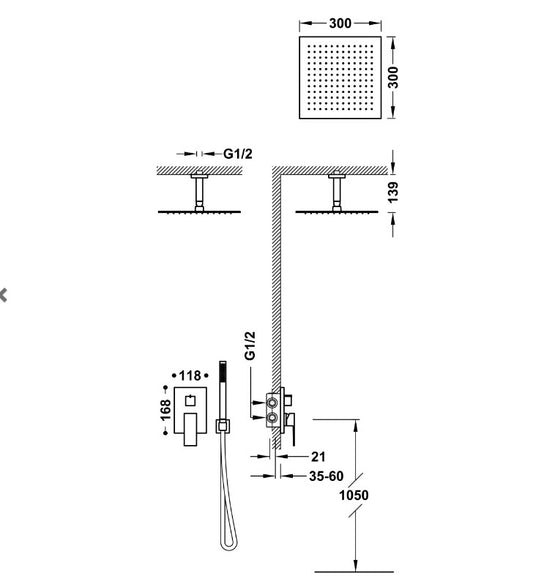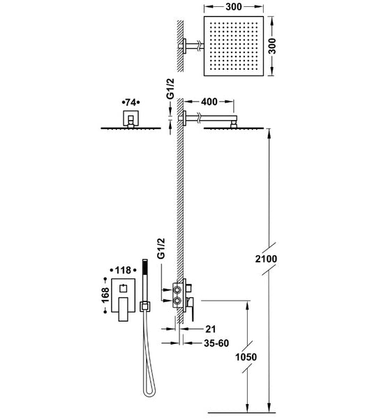 CUADRO Ensemble mitigeur mural à 2 voies pour douche-00719101