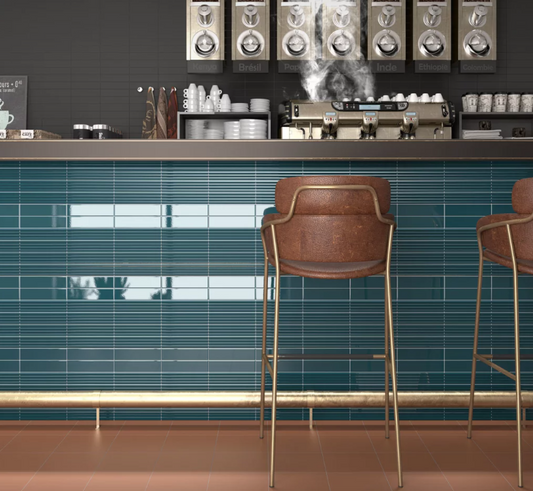 Faïence murale Kit-kat relief Costa Nova 5x20 cm Banyan bleu