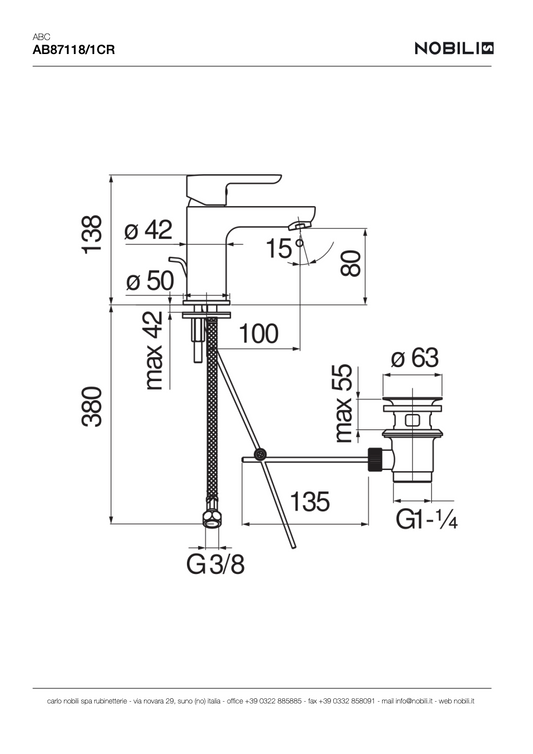 LAVABO, MITIGEUR MONOCOMMANDE AB87118/2CR, ABC
