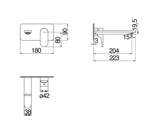 Mitigeur lavabo encastré, 20030001AC-ACIER bec 180mm