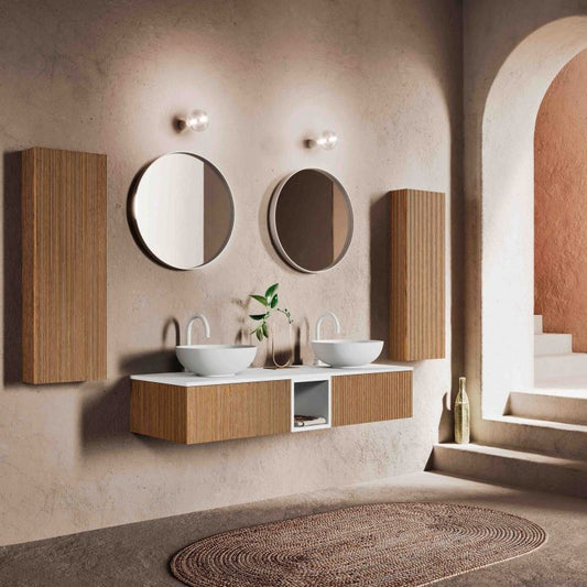 Meuble de salle de bain suspendu Kyoto, vasque à encastrer