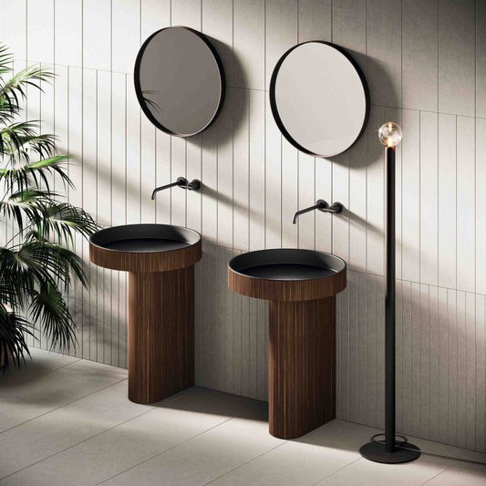 Meuble salle de bain colonne en Noyer strié L. 59,0 - P. 59,0