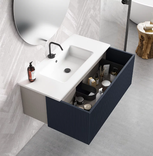 Meuble salle de bain strié laqué, 1 tiroir L120 x 52 cm