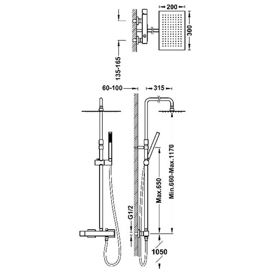 COLONNE DOUCHE, MITIGEUR MONOCOMMANDE MURAL AVEC BARRE TÉLESCOPIQUE AB87130/50CR, ABC