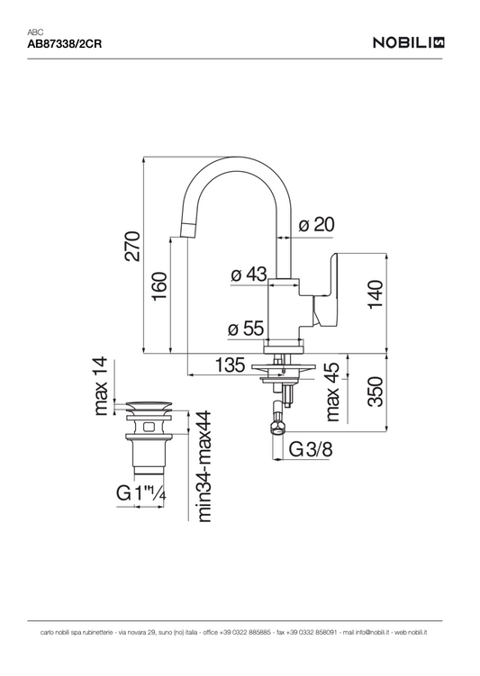 LAVABO, MITIGEUR MONOCOMMANDE BEC LONG AB87338/2CR, ABC