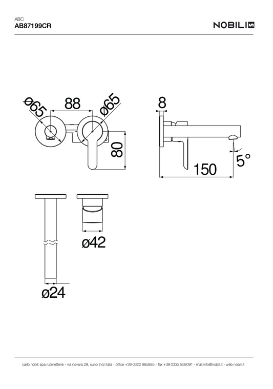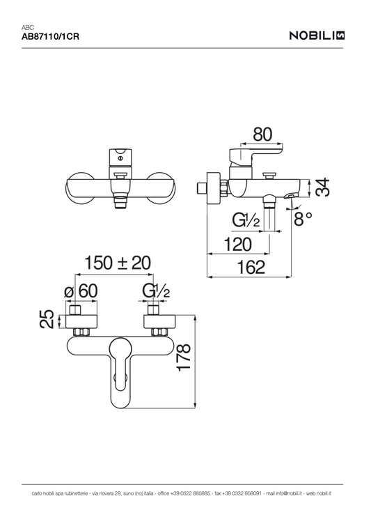 MITIGEUR MONOCOMMANDE MURAL AB87110/1CR, ABC