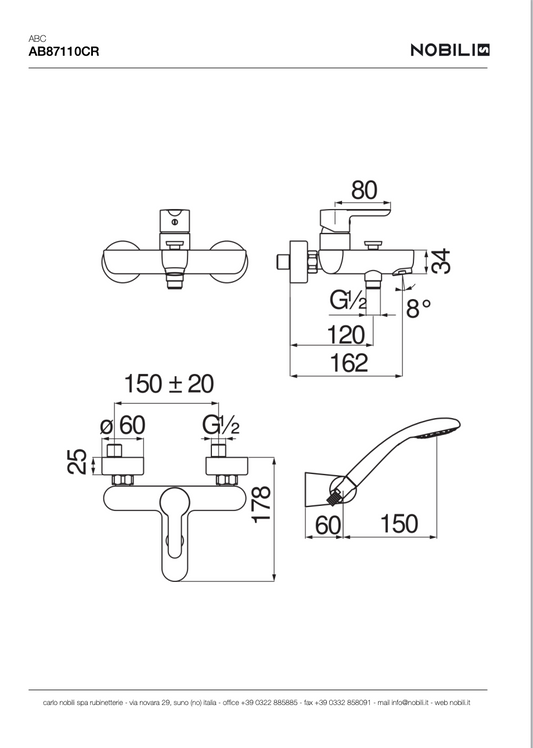 DOUCHETTE MITIGEUR MONOCOMMANDE MURAL COMPLET AB87110CR, ABC