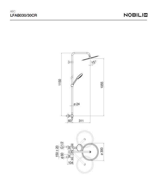 COLONNE DOUCHE, MITIGEUR THERMOSTATIQUE MURAL LFAB030/30CR, ABC