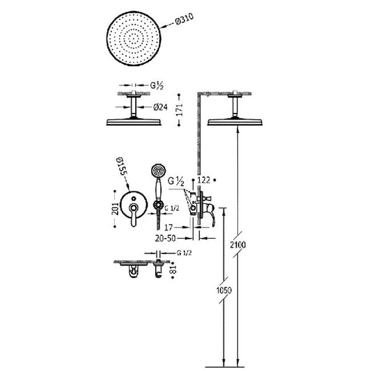 Colonne de douche encastré à 2 voies pour douche-24218004LV