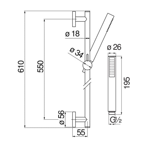 Barre de douche VELIS AD140/37IX INOX