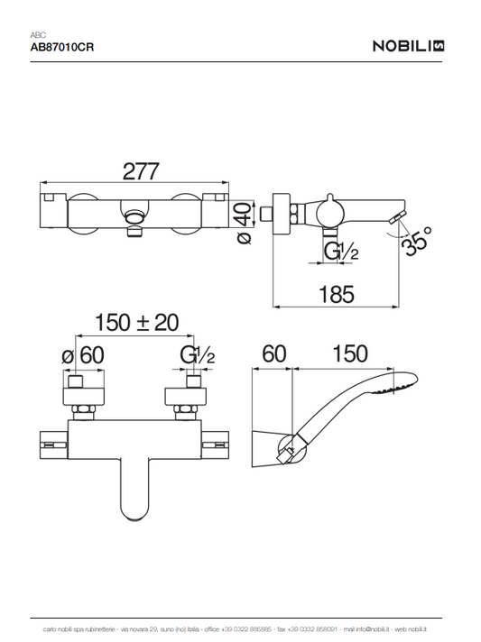 DOUCHETTE THERMOSTATIQUE MURALE COMPLET AB87010CR, ABC