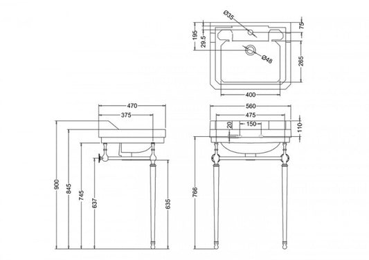 Vasque rectangulaire et console Edouardien BURLINGTON 56 cm