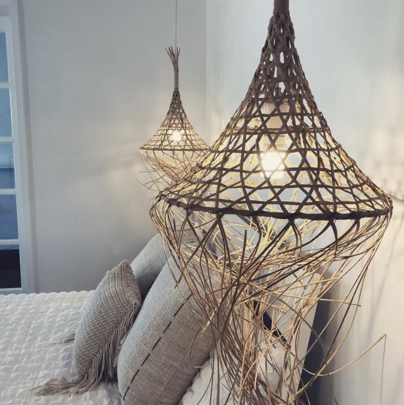 Une abat-jour ludique et adorable fabriquée à la main en rotin. Créez une véritable ambiance bohème côtière dans une chambre à coucher, une chambre d'enfant, un salon, un couloir ou un espace extérieur couvert.