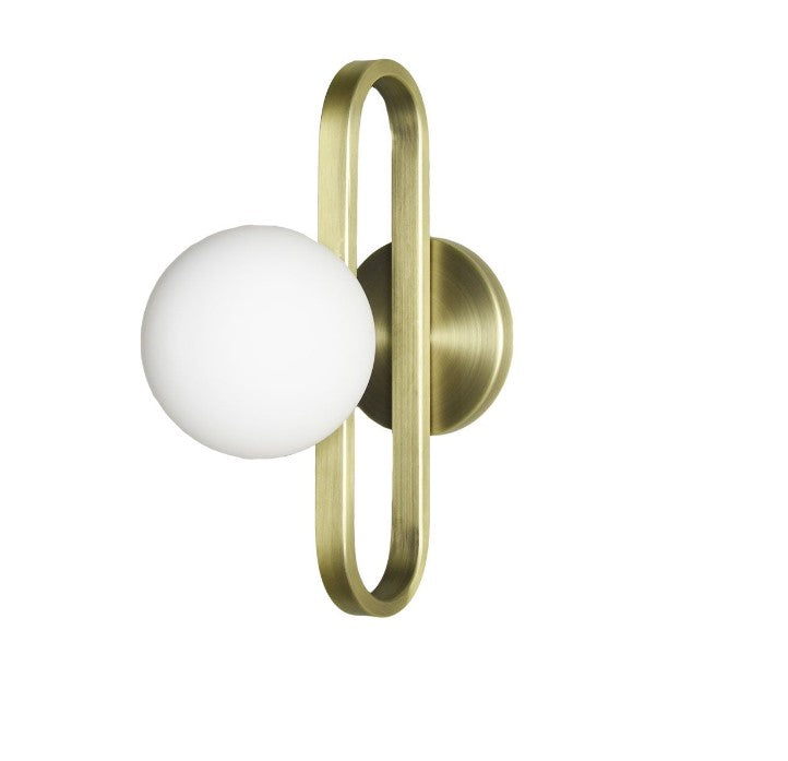 Applique CIME ip44 en verre soufflé opaline et acier laitonné