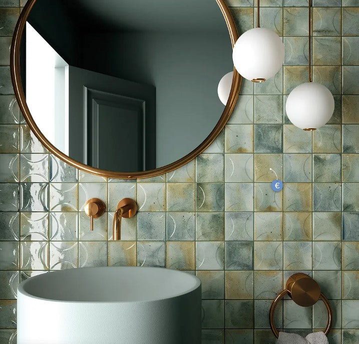 Carrelage effet zellige 10x10 Hanoi vert Celadon Arco, relief 0.50/boîte