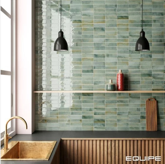 Carrelage effet zellige 6.5x20 cm Hanoi Celadon vert 0.50/boîte