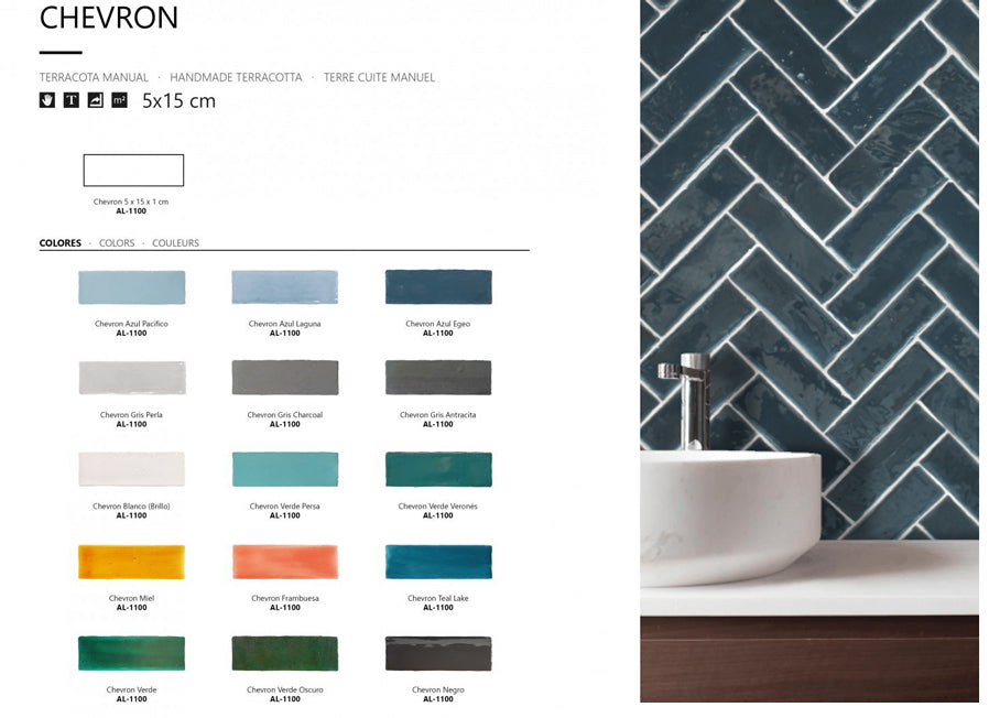 Carrelage en céramique traditionnelle Chevron 5 x 15 x1 cm cm 1.05/boîte