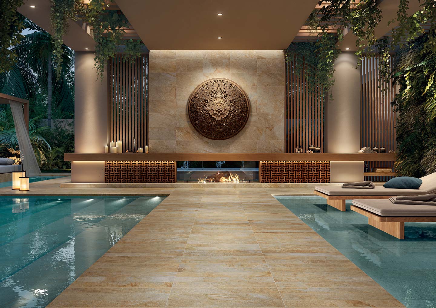 Zéphyr est une passionnante explosion de couleurs. Zéphyr, c’est la possibilité d’avoir dans son jardin, sur son balcon, dans sa piscine, toutes les inimaginables nuances matérielles et chromatiques de la pierre de Bali : des nuances allant du vert d’eau, au gris, à l’ocre, jusqu’aux tons dorés du jaune, de rose et de rouille, dans une fusion harmonique qui ne peut être obtenue dans la nature qu’à travers des processus millénaires de formation et de transformation de la matière.