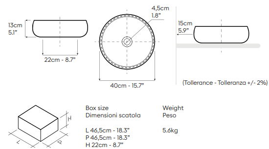 Vasque circulaire à poser en argile Ruka clair