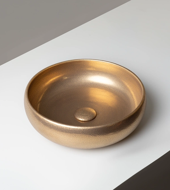 Vasque circulaire à poser Metal Craquelé or mat