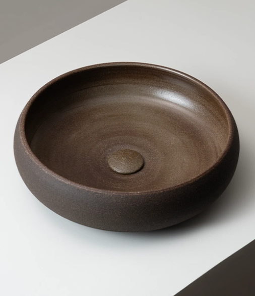 Vasque circulaire à poser en terre cuite réfractaire foncée